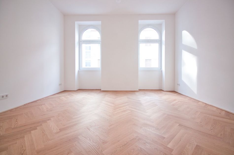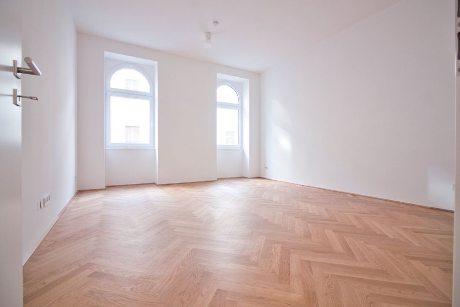 Die westseitige Wohnküche mit knapp 22 m² lässt keine Wünsche offen: Platz für einen Essbereich, für eine gemütliche Couchlandschaft und eine offene Küche ist ausreichend vorhanden. Die Wohnung überzeugt zusätzlich mit wunderschönem Fischgrätparkett, Fußbodenheizung, über 3 Meter hohen Räumen und Kunststoff-Doppelisolierglas-Fenstern.
