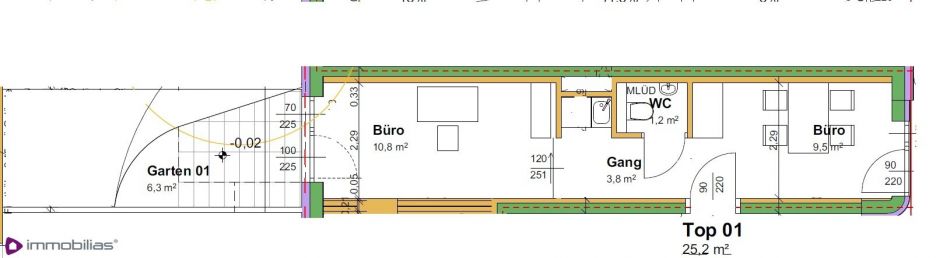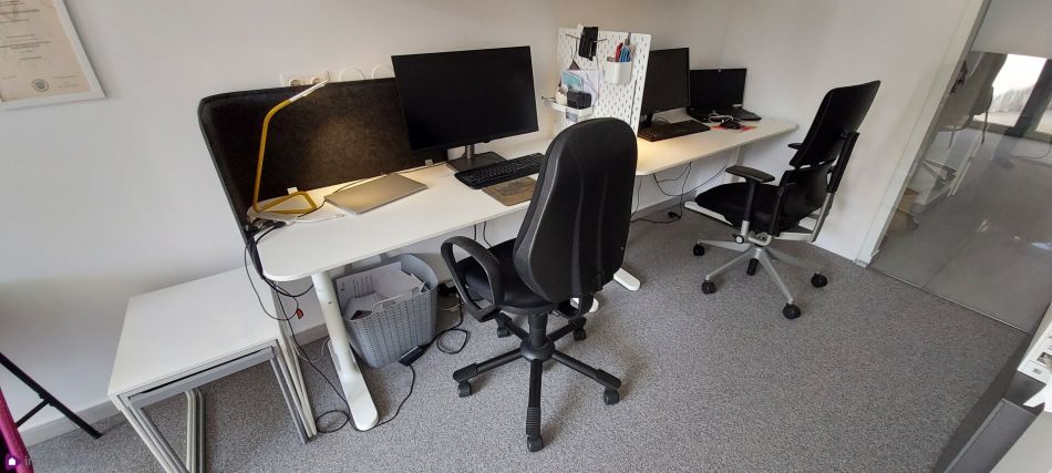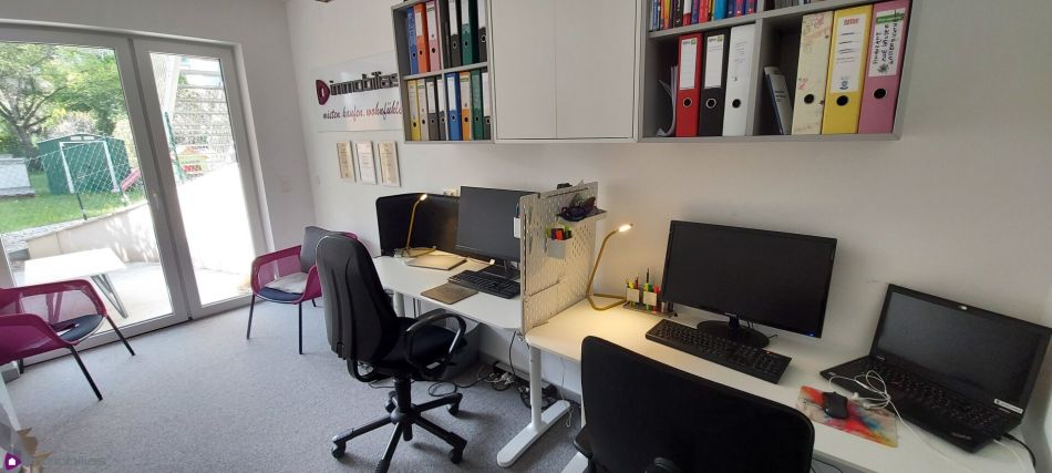 Es handelt sich insgesamt um eine Gewerbefläche mit knapp 25m² Nutzfläche und einem kleine innenhofseitigen Außenbereich/ Garten. Vermietet wird ein möblierter Arbeitsplatz mit ca 10 m² inklusive der gemeinsamen Nutzung von Küche, Terrasse und Toilette. Die andere Hälfte des Büros steht großteils leer, ab und an kann es zu einer Nutzung kommen. Das ist aber eher die Ausnahme. Es handelt sich also um 2 getrennte Arbeitsbereiche, wovon einer vermietet wird.