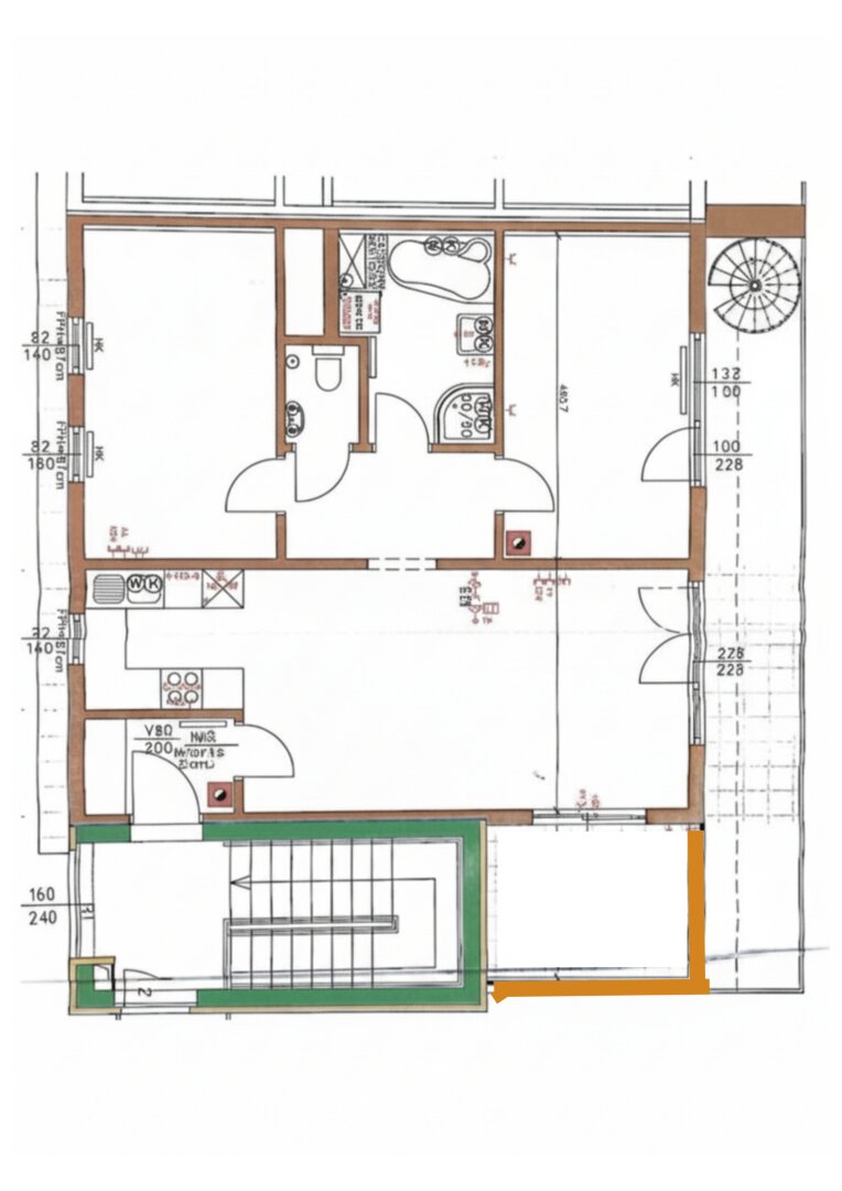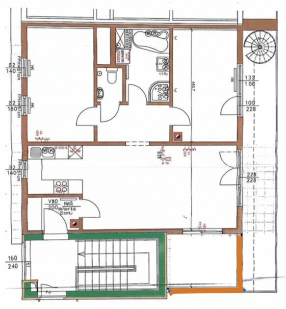 • großen Terrasse auf der Wohnungsebene (ca. 17 m2) und ca. 40 m2 großen Dachterrasse (derzeit wegen Sanierung nur eingeschränkt nutzbar)