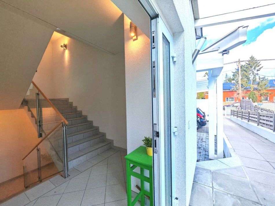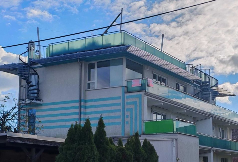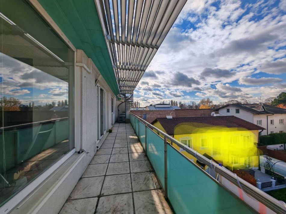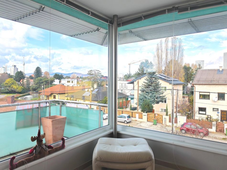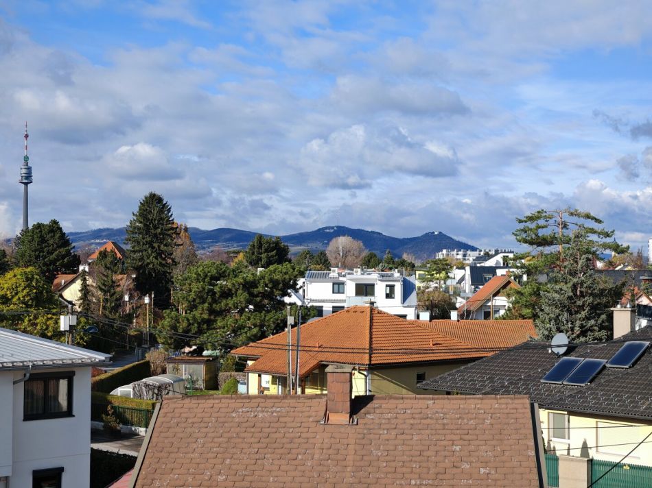 Die Wohnung befindet sich in einer stillen Gasse, die sich zwischen der Alten Donau und der Erzherzog-Karl-Straße erstreckt. Die Umgebung ist geprägt von Einfamilienhäusern und viel Grün, was für Entspannung nach einem anstrengenden Arbeitstag und Erholung am Wochenende bietet.Das Gebäude beherbergt lediglich sieben Wohnungen auf drei Etagen. Diese Wohnung im obersten Stockwerk (ohne Lift) bietet nicht nur einen beeindruckenden Ausblick bis zum Kahlen- und Leopoldsberg, sondern garantiert auch absolute Ruhe. Da sich oberhalb keine weiteren Nachbarn befinden, kann man die Stille und Privatsphäre in vollen Zügen genießen.