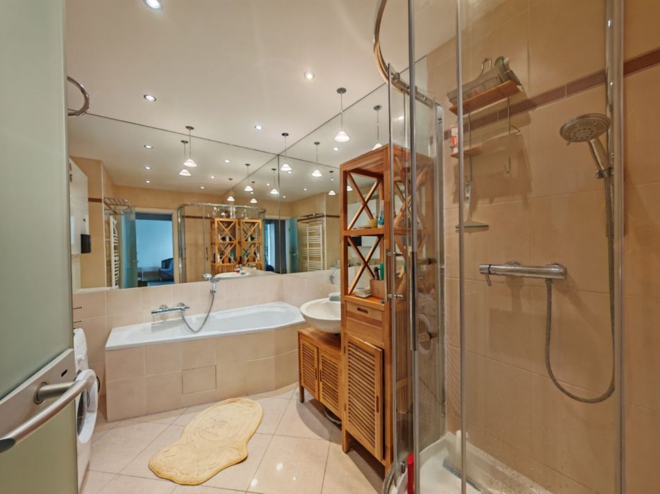 • Badezimmer mit Dusche und Wanne