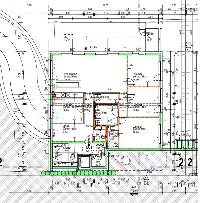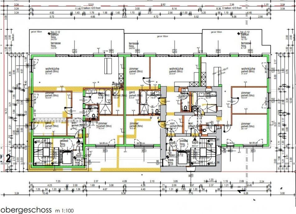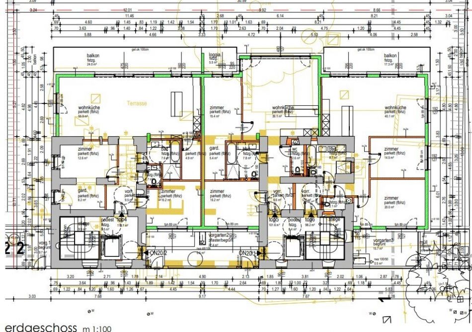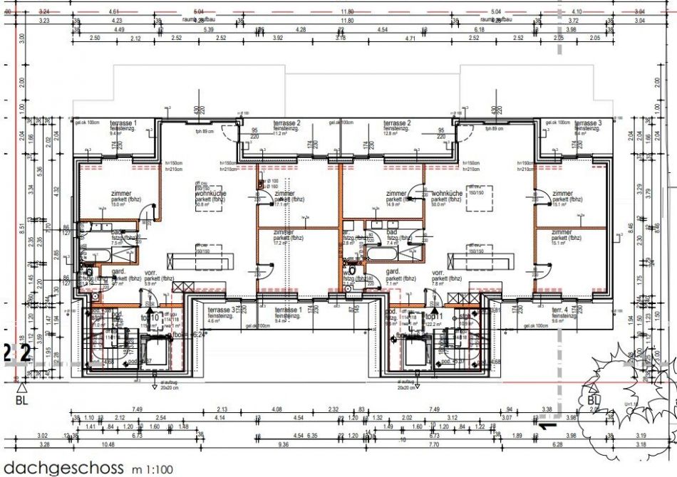 Die geplanten Wohnungen überzeugen durch großzügige und effiziente Grundrisse mit Wohnflächen von ca. 77 m² bis ca. 151 m². Damit deckt das Projekt ein breites Spektrum ab, von komfortablen Familienwohnungen bis hin zu exklusiven, großzügigen Einheiten für anspruchsvolle Eigennutzer. Insgesamt wird mit der Planung eine großzügige Wohnfläche von ca. 1.718 m² erzielt. Zusätzlich dazu sind in der Planung Terrassen, sowie Eigengärten, welche eine Gesamtfläche von ca. 2.133 m² aufweisen, vorgesehen.