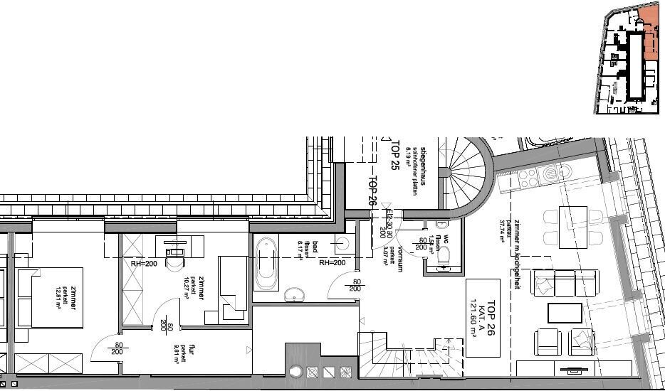 Gesamtmiete (inkl. BK, Heizung/Warmwasser, sowie Liftkosten und Steuern): € 2.520,-