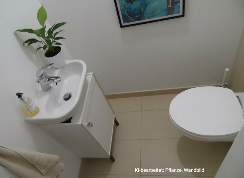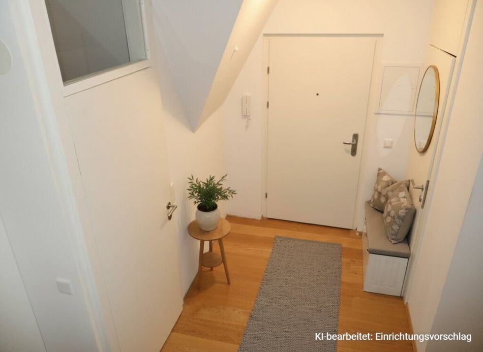 Beim Betreten der Wohnung gelangen Sie in einen großzügigen Vorraum, der ausreichend Platz für eine Garderobe bietet. Gleich links befindet sich das separat angelegte WC mit Handwaschbecken.