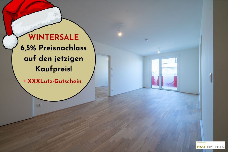 In der kalten Jahreszeit lassen wir die Preise schmelzen: Beim Kauf einer Eigentumswohnung in einem unserer Objekte in der Berresgasse ersparst du dir bis 31.3.2026 die Nebenkosten* und bekommst so jede Wohnung um 6,5% günstiger.