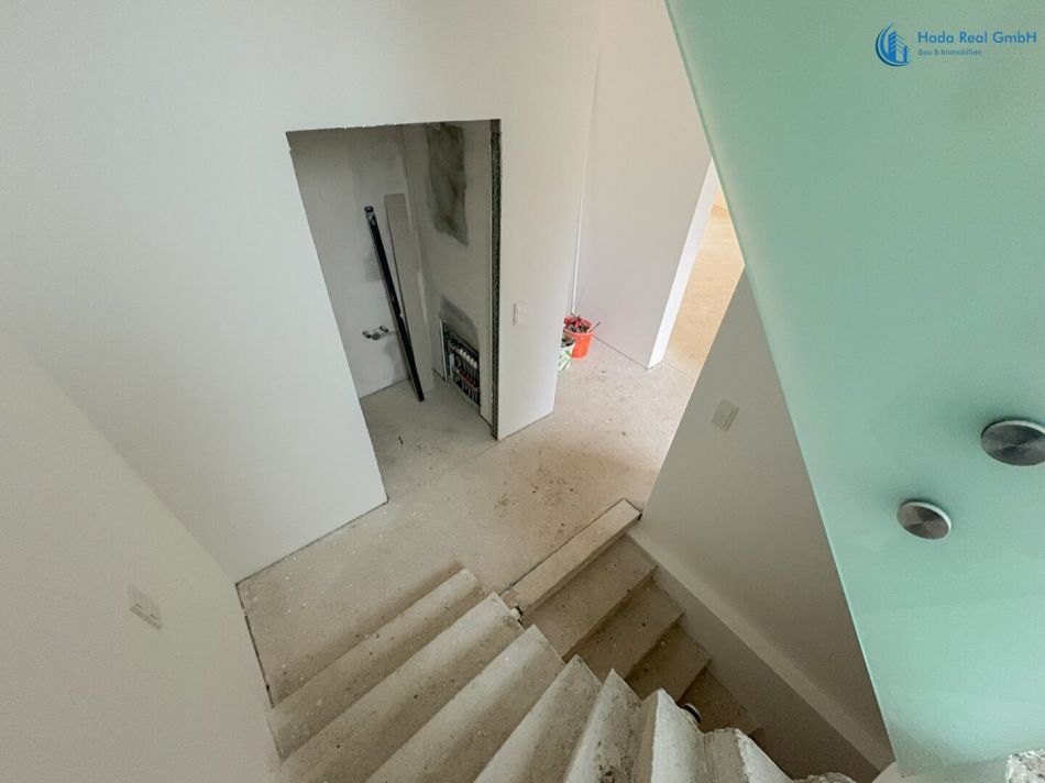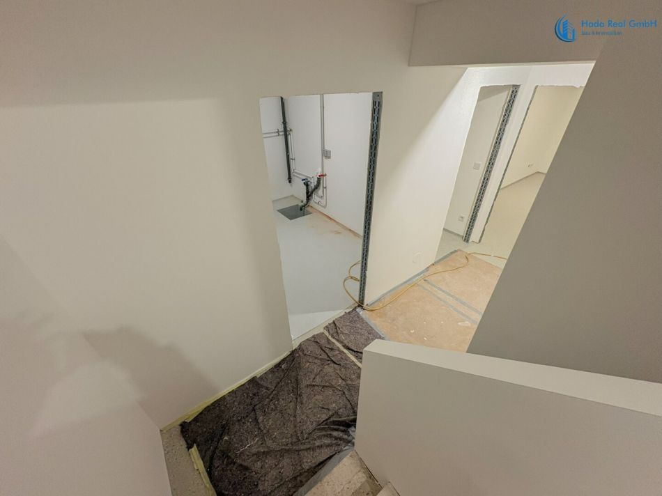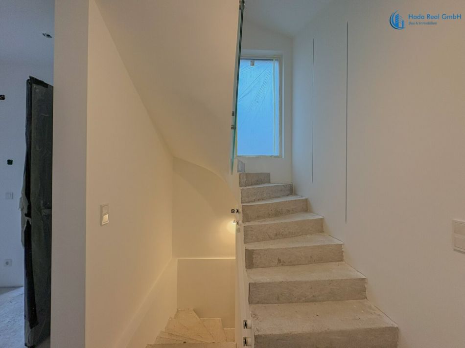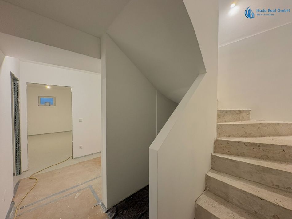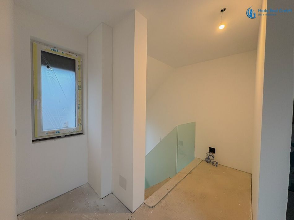 Im Innenbereich erfolgen noch die Fertigstellungsarbeiten der Oberflächen, insbesondere: Bodenbeläge (Parkett), Wand- und Bodenfliesen sowie die Montage der Innentüren. Diese Ausführung erfolgt im Rahmen der schlüsselfertigen Herstellung gemäß Bemusterung.