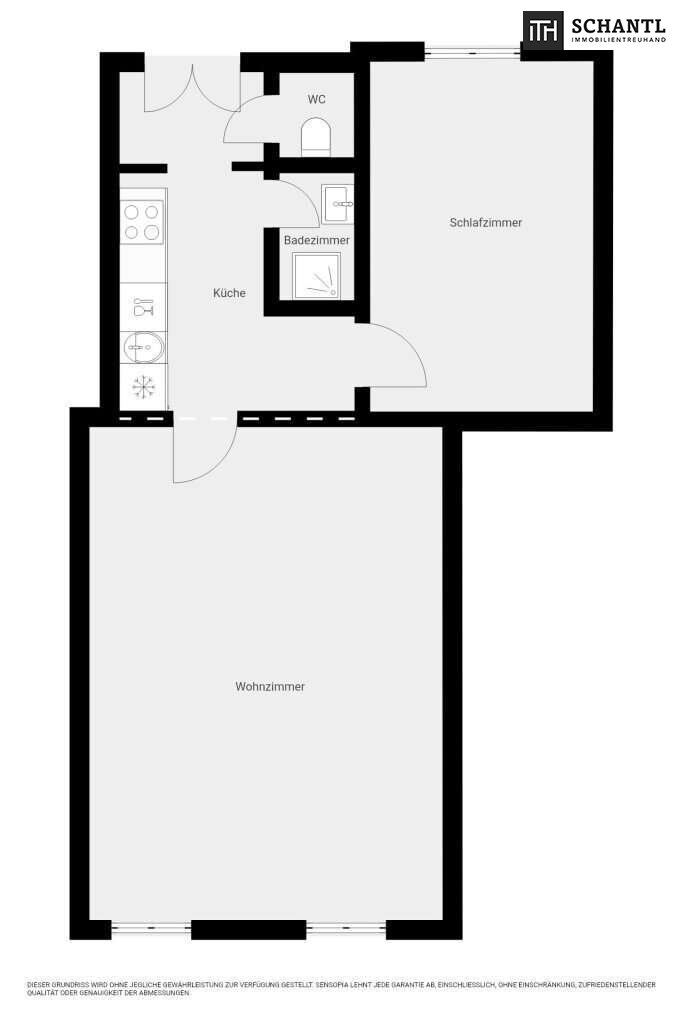 Die rund 47,06 m² teilen sich auf in Vorraum, Wohnzimmer, Kabinett, separate Küche, Bad und WC – kompakt, durchdacht und mit viel Liebe zum Detail saniert.