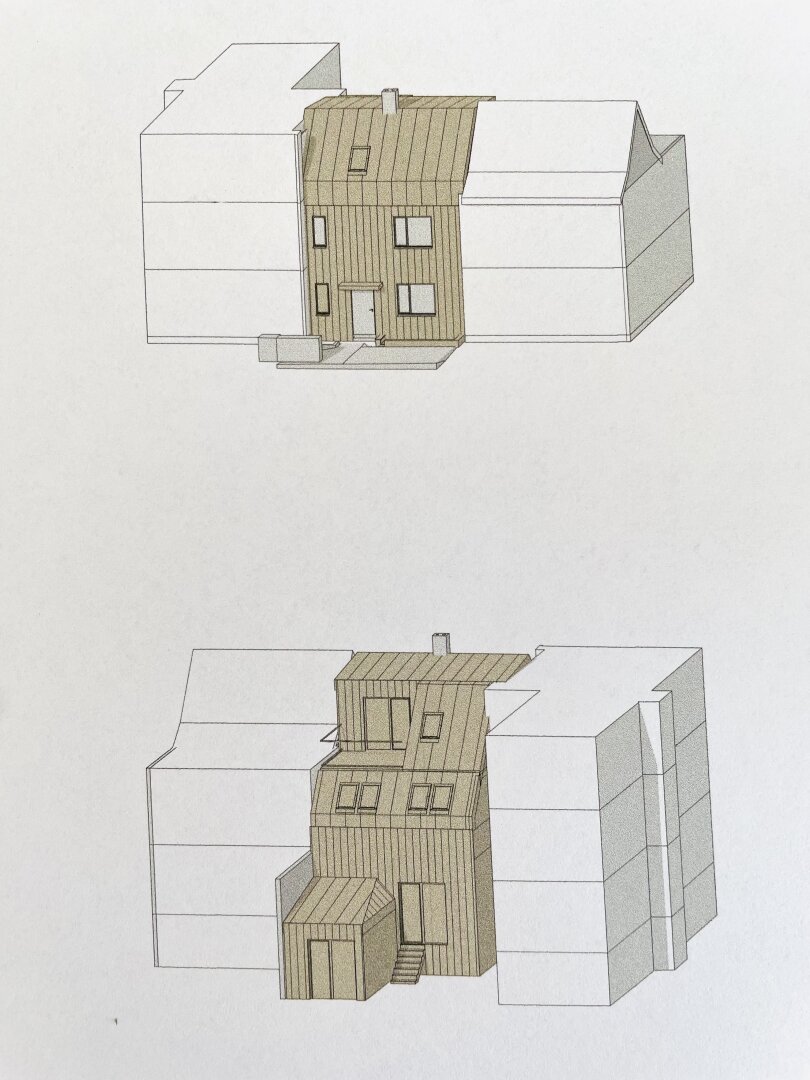 - erzielbare Wohnfläche: bis zirka 230 m² auf 3 Etagen plus Freifläche (Terrasse, Balkon) und Untergeschoß mit zirka 90 m² ausbaubar