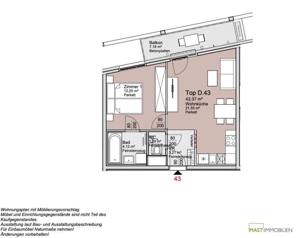 PROVISIONSFREI für den Käufer!Alle verfügbaren Wohnungen finden Sie auf unserer Homepage unter www.mast-immo.at. Um Ihre Suche zu erleichtern, steht Ihnen auf unserer Projektseite www.anderschanze25.at ein Wohnungsnavigator zur Verfügung, der Ihnen hilft, sich einen Überblick über die Lage der einzelnen Wohnungen innerhalb des Komplexes zu verschaffen.