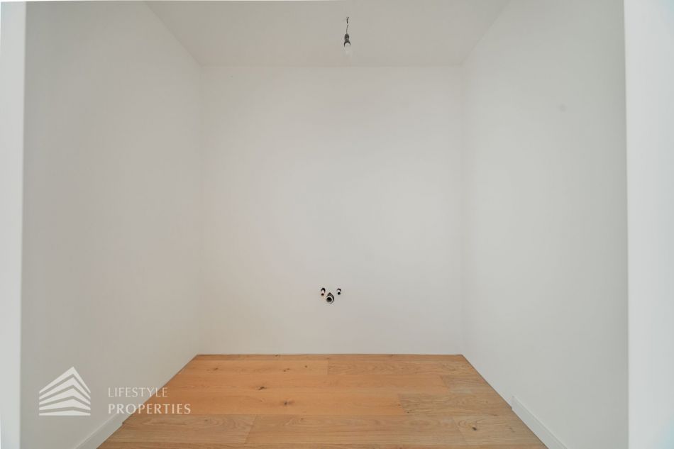 Alle Wohnräume sind mit hochwertigem Eichenparkett ausgestattet, während das Badezimmer mit zeitlos eleganten Fliesen versehen ist.