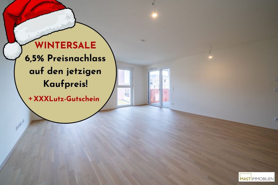 In der kalten Jahreszeit lassen wir die Preise schmelzen: Beim Kauf einer Eigentumswohnung in einem unserer Objekte in der Berresgasse ersparst du dir bis 31.3.2026 die Nebenkosten* und bekommst so jede Wohnung um 6,5% günstiger.