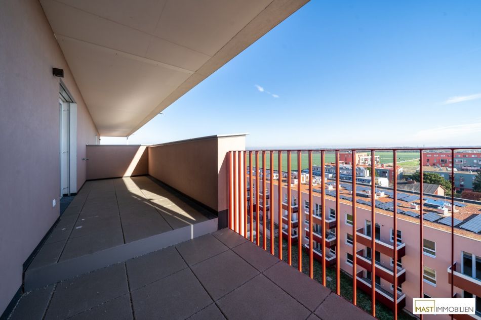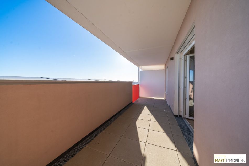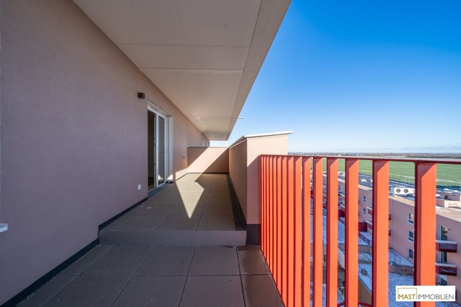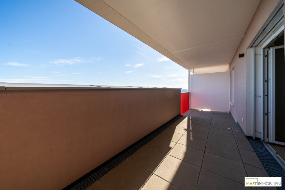 Die Wohnung befindet sich im 7. OG und verfügt über 46,65 m² Wohnfläche + einen 5,36 m² großen Balkon + eine 10,13 m² große Terrasse.