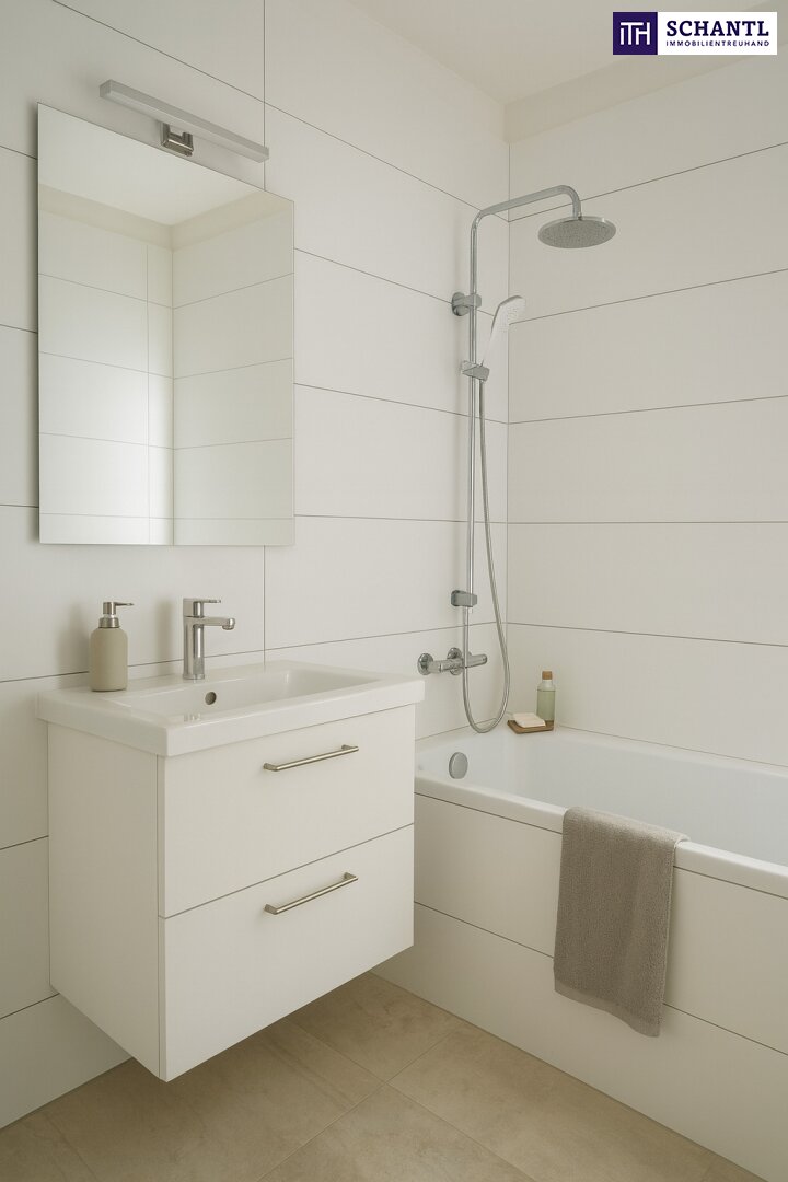 Das geschmackvoll gestaltete Badezimmer verfügt über eine Badewanne, die zum Entspannen einlädt.
