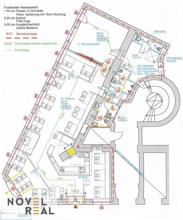 ca. 165 m² Erdgeschoss (Gastraum, Bar, Küche, Service)
