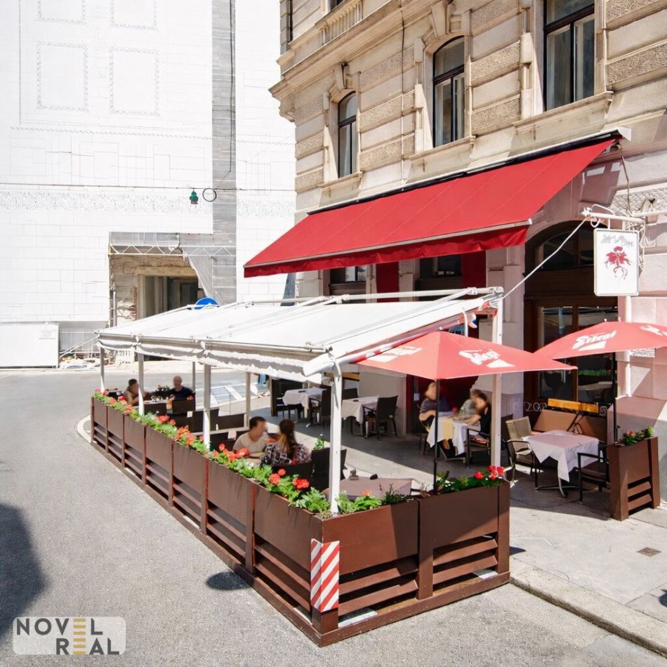 Im Innenbereich stehen rund 65 Sitzplätze zur Verfügung. Ergänzt wird das Angebot durch einen repräsentativen Schanigarten mit ca. 75 Sitzplätzen und einer Länge von rund 28 Metern, der eine hohe Sichtbarkeit und starke Frequenz gewährleistet.