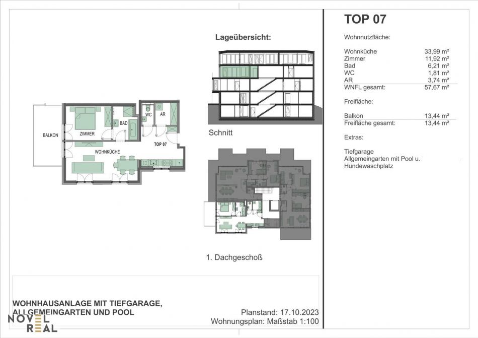 Die Wohnung im Dachgeschoß bietet eine Wohnfläche von ca. 57,67 m² + 1 Balkon mit ca. 13,44 m², sie verfügt über 2 Zimmer, 1 Abstellraum, 1 Badezimmer, 1 Toilette und einen Eingangsbereich. Durch die gut durchdachte Raumaufteilung ist die Wohnung perfekt für Singles und Paare geeignet. Der Personenaufzug, der Fahrradraum und vieles mehr im Haus machen die Wohnung zu einem wahren Wohlfühlort.