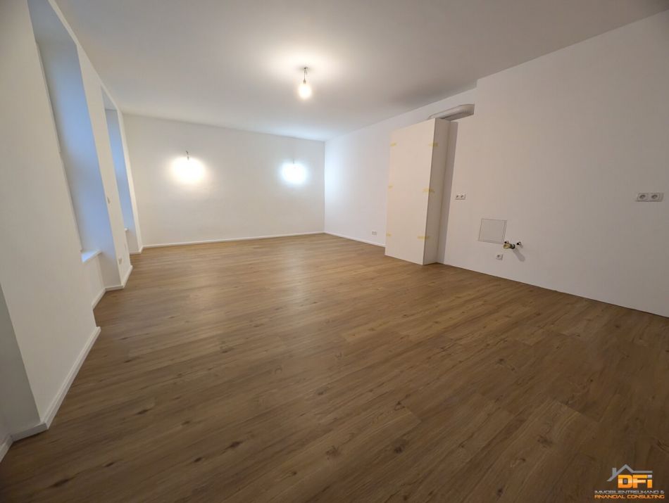 Wohnzimmer mit Küche (rd. 31m²): Dieses Zimmer ist sehr großzügig geschnitten und bietet genug Platz für einen Wohn- als auch Essbereich. Die Küche ist bereits vorhanden. In diesem Zimmer befindet sich Laminatboden.