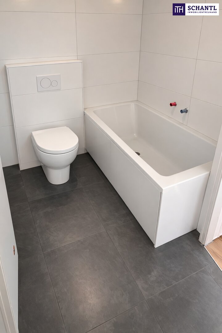 Das Badezimmer ist geschmackvoll gestaltet und mit einer Badewanne ausgestattet – ideal zum Entspannen und Abschalten. Ein besonderes Highlight der Wohnung ist die ca. 10 m² große Außenfläche, die sich ruhig in den Innenhof orientiert. Hier genießen Sie entspannte Stunden in privater Atmosphäre – mitten in der Stadt.