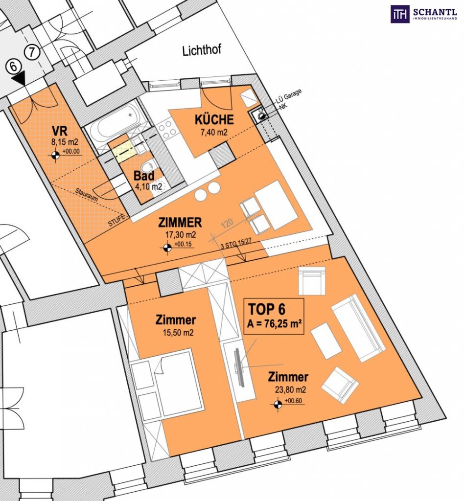 Größe: ca. 77,55 m² + Lichthof ca. 4 m²
