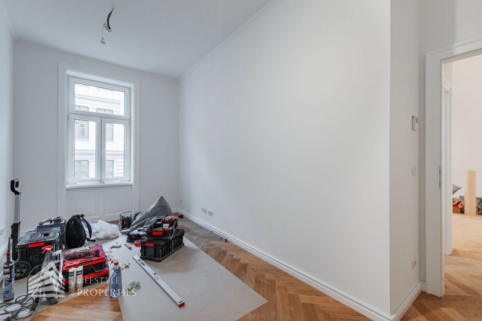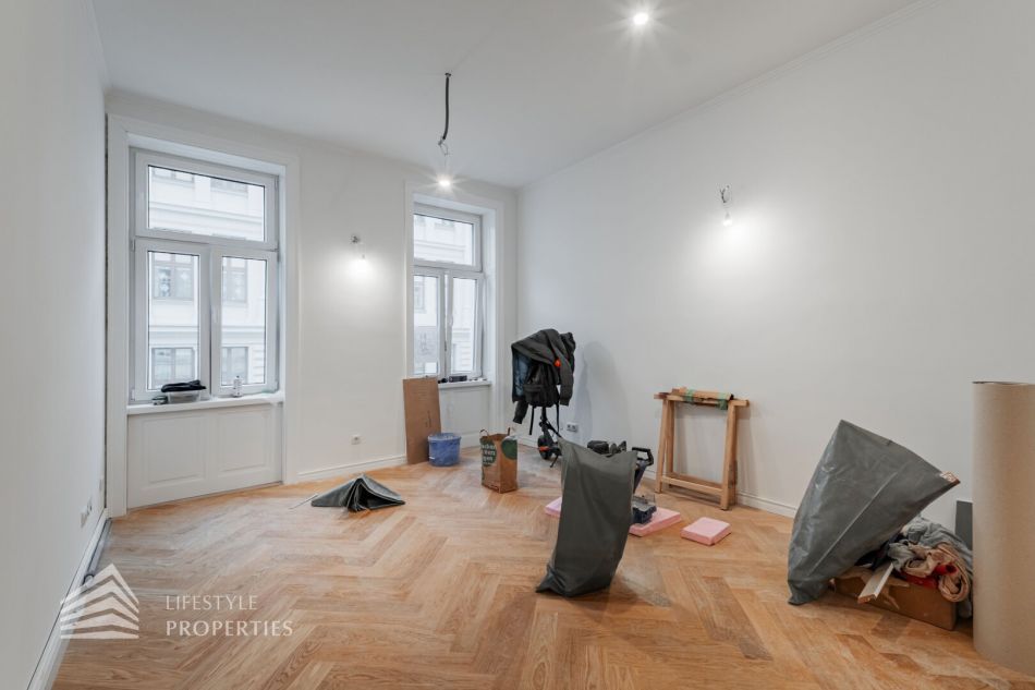 Die Wohnung mit ca. 66 m² befindet sich im 2. Liftstock eines um die Jahrhundertwende errichteten Stilaltbaus in einer gefragten Wohngegend des 4. Wiener Gemeindebezirks. Die elegante Gründerzeitfassade sowie auch sämtliche Allgemeinflächen des Hauses wurden mit viel Liebe zum Detail renoviert. Die Wohnung gliedert sich in einen Vorraum, eine Küche, ein Wohnzimmer, zwei Zimmer, ein Bad und ein WC.