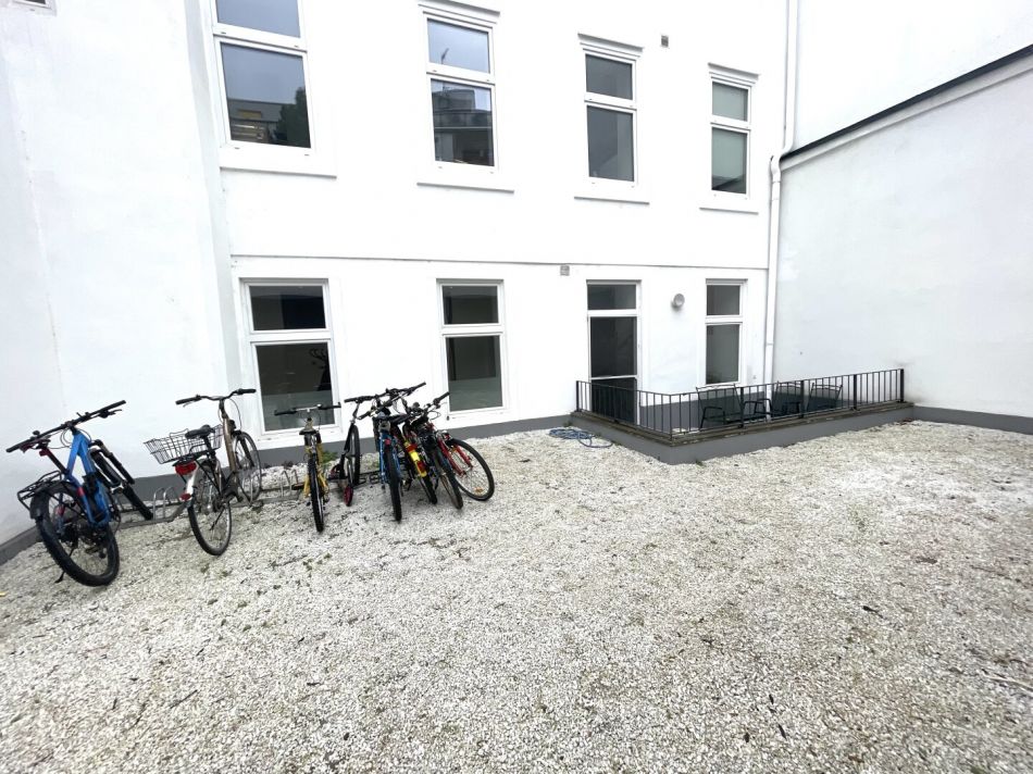 Im Haus kann zusätzlich eine Einzelgarage oder Stellplatz (in Doppelgarage) erworben werden. Diese befindet sich im Innenhof des Hauses.