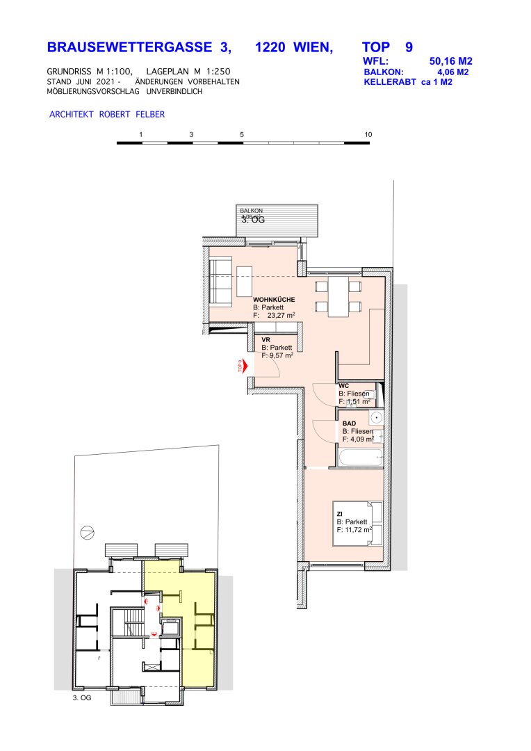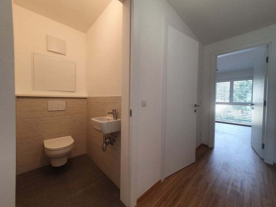 Diese Wohnung befindet sich im 3. und vorletzten Stockwerk eines kleinen Hauses mit insgesamt 13 Einheiten, das im Jahr 2021 neu erbaut wurde.Die etwa 50 m² große Top 9 ist so ausgerichtet, dass das Schlafzimmer nach Osten und die Wohnküche mit Balkon nach Westen zeigt. Dadurch profitiert man morgens von Sonnenlicht im Schlafzimmer und abends von Sonnenuntergangsstimmung im Wohnbereich.