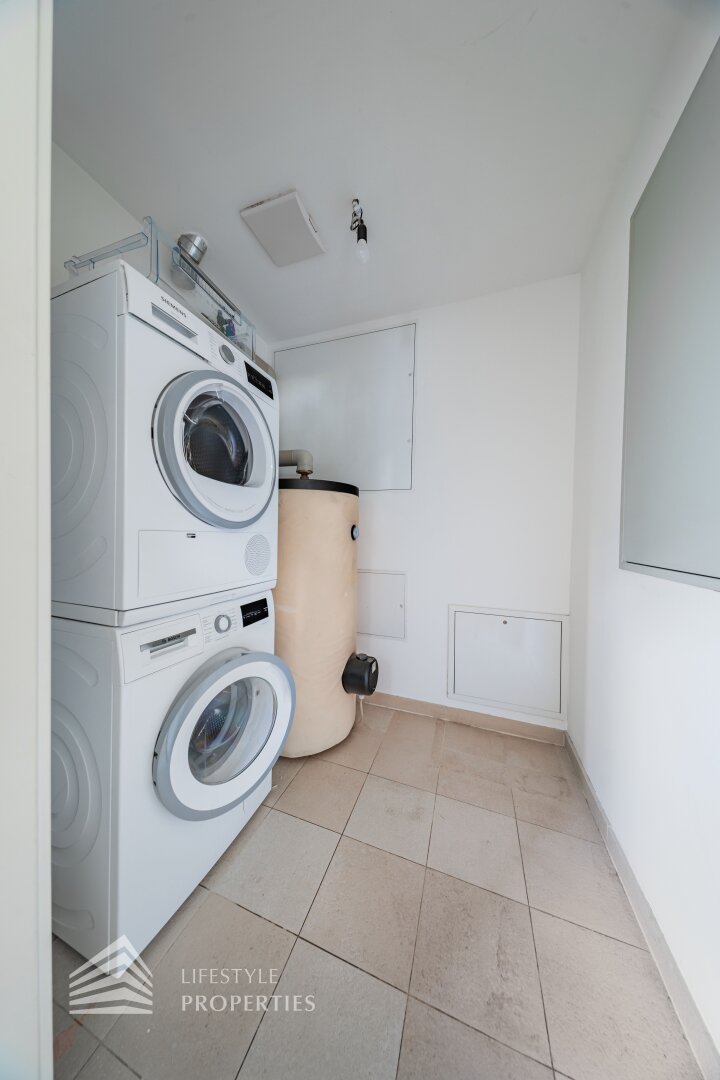 Das Wohnhaus verfügt über einen Innen- sowie Außenpool. Ergänzt wird das Angebot durch eine Sauna mit integrierter Dusche und WC. Alle Einrichtungen stehen das ganze Jahr über zur Verfügung. Ein weiteres Highlight ist der Weinkeller, der nicht nur über individuelle Weinabteile für jede Wohnung verfügt, sondern auch ideal für Feierlichkeiten genutzt werden kann. Zudem gehört ein Kamin zur Ausstattung jeder Wohnung.