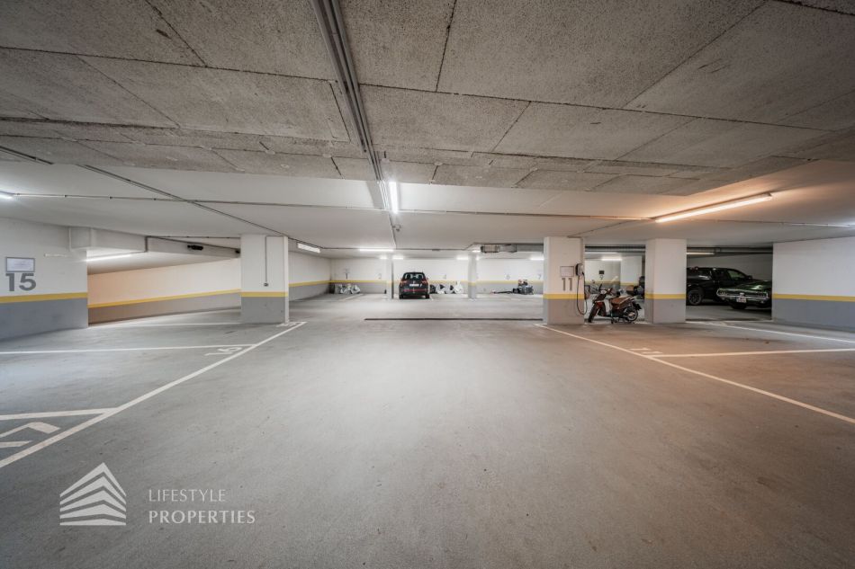 Für die Wohnungen stehen in den Tiefgaragen Parkplätze zur Verfügung zum Preis von €180,- brutto monatlich.