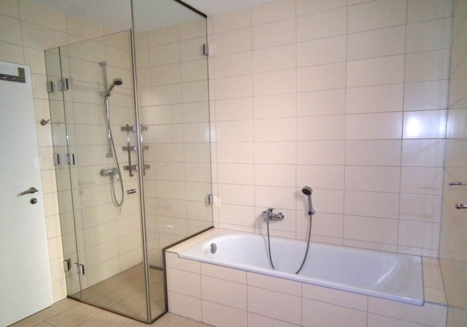 Wohnküche mit AEG Geräten; Bad mit Wanne und Dusche, Spiegelschrank, Waschmaschinenanschluss, WC; separates WC mit Handwaschbecken; Balkon mit 9,75 m² (Betonplatten) und Abstellraum; Außenrollos (elektrisch); Terrasse mit Kalksteinplatten, Gang mit Gegensprechanlage und Sicherheitstüre, alle Wohn- und Schlafräume mit Parkett, Telekabelanschluss; Die Wohnräume sind mit schönem Parkettboden, die Sanitärräume sauber verfliest.