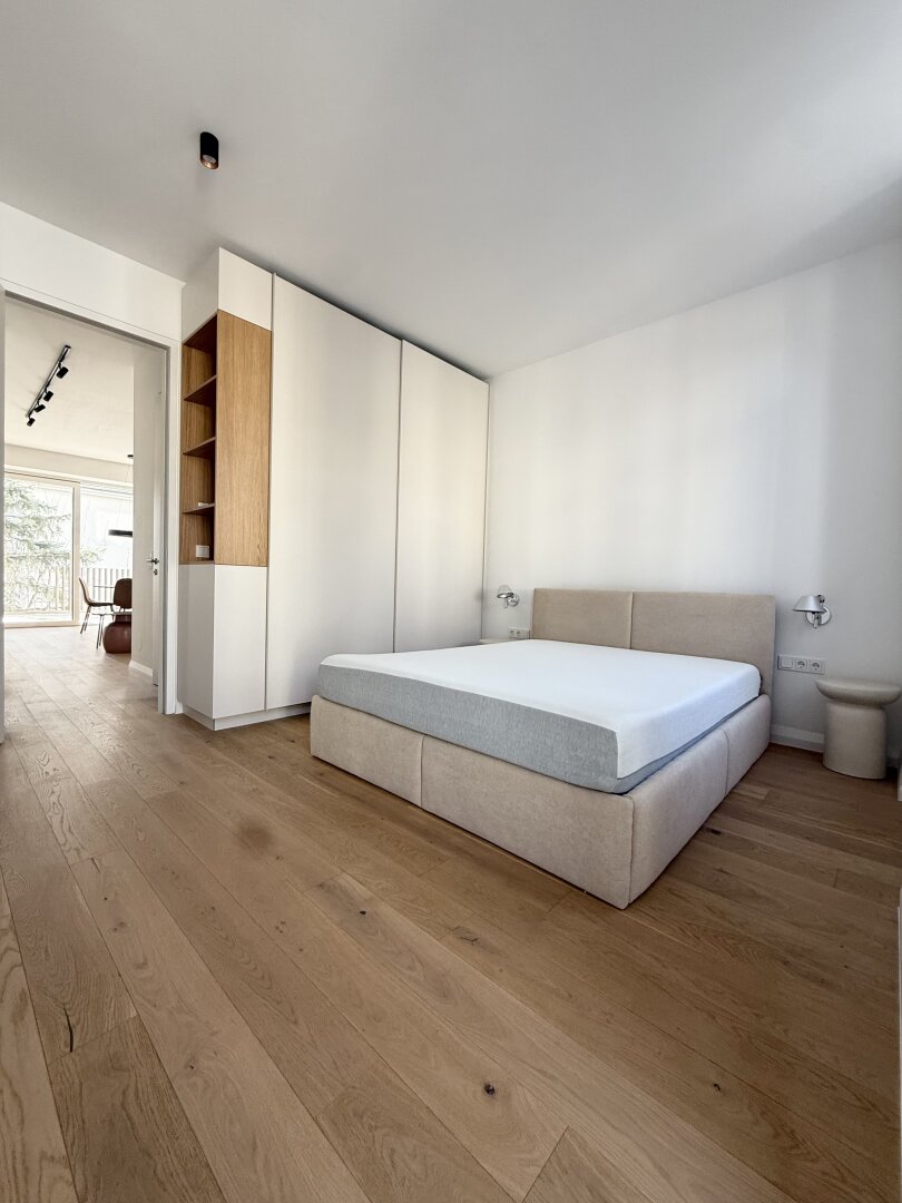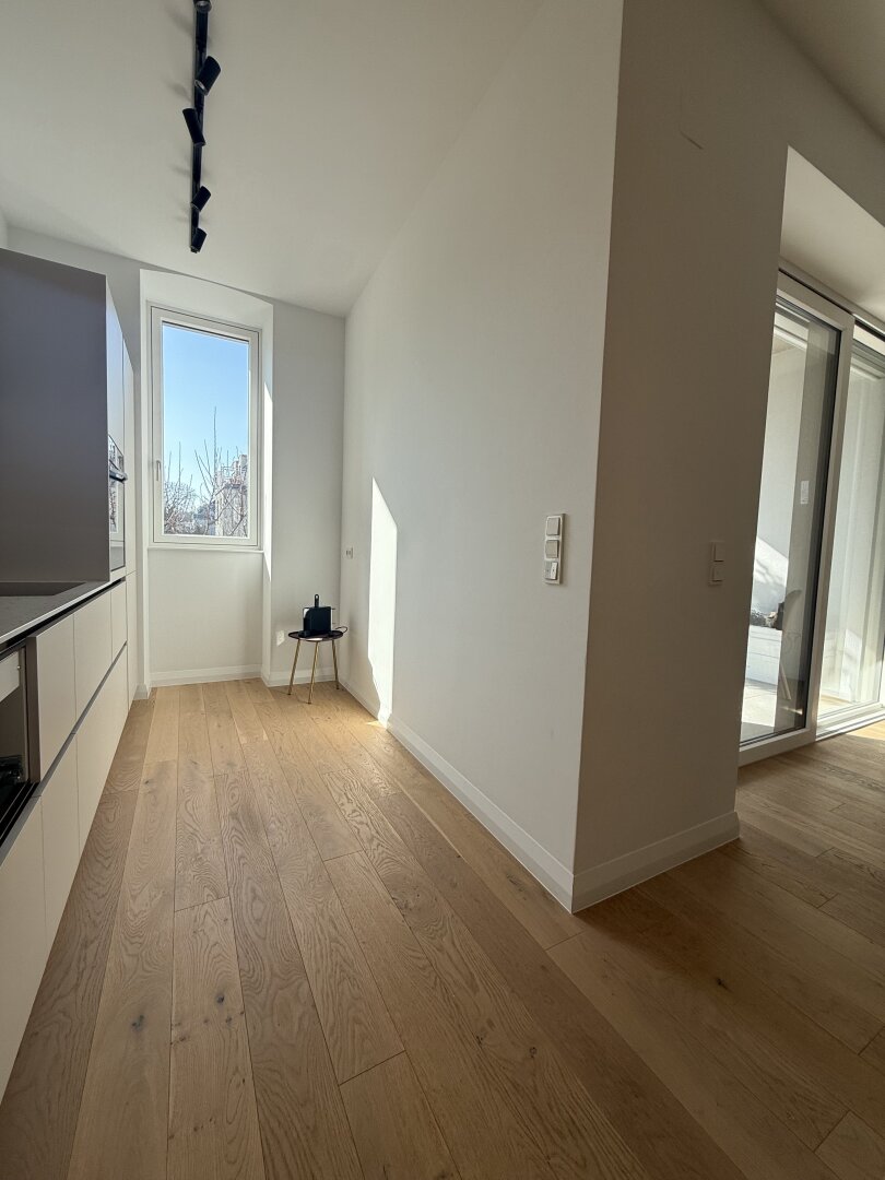 Vom Wohn-/Esszimmer gelangt man direkt auf die großzügige Loggia mit Blick ins Grüne. Das Hauptschlafzimmer verfügt über einen kleinen Balkon zur Auhofstraße und liegt direkt neben dem ersten von zwei Bädern. Das zweite Schlaf-/Arbeitszimmer befindet sich direkt gegenüber dem zweiten geräumigen Duschbad mit integriertem WC. Die Wohnung bietet viel Raum für individuelle Möbel und Accessoires - ganz wie es Ihnen beliebt!