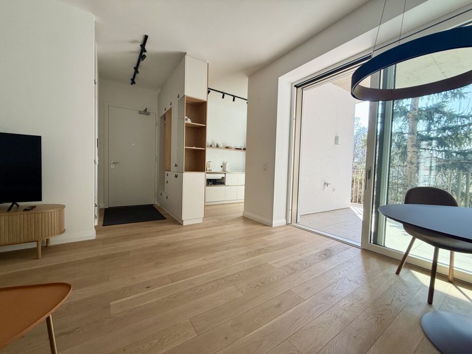 Offener Wohn-Essbereich mit Zugang zur Loggia/Terasse
