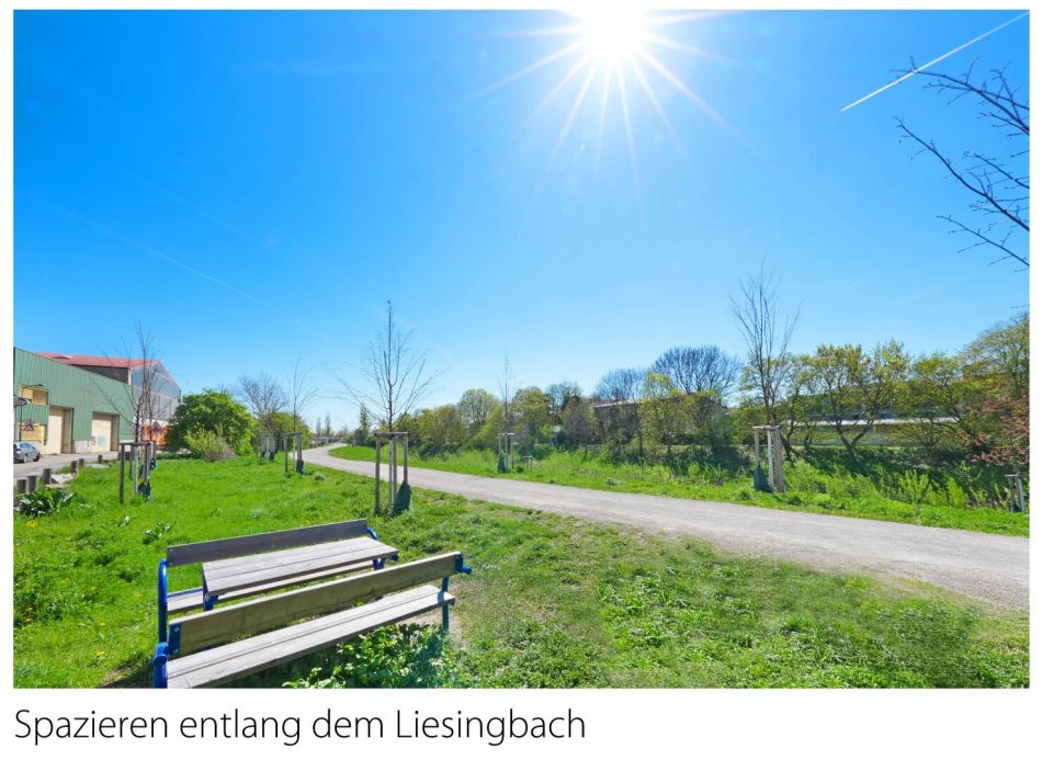 Der LIESINGBACH liegt ca. 2 Gehminuten, der HANS DUNKL PARK ca. 6 Gehminuten, der JOHANN-BENDA-PARK ca. 8 Gehminuten und das ERHOLUNGSGEBIET WIENERBERG mit dem WIENERBERGTEICH ca. 12 Gehminuten entfernt. Die Therme Oberlaa bzw. der Kurpark Oberlaa sind in ca. 10 Autominuten schnell erreicht.