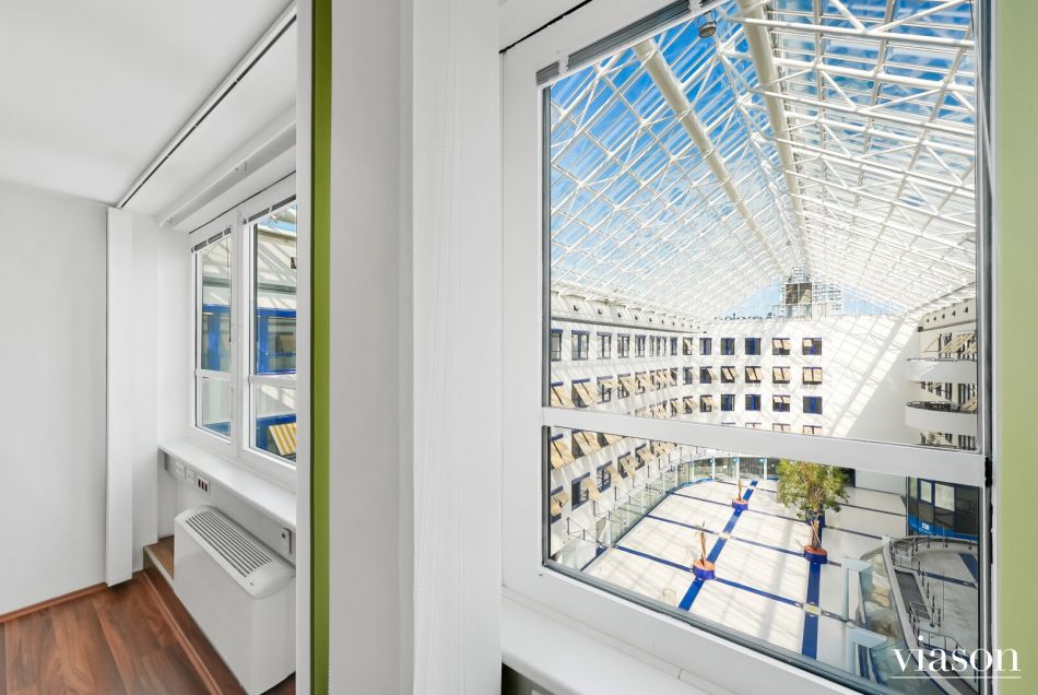 Das DONAU BUSINESS CENTER umfasst 6 Ebenen mit insgesamt ca. 22.000 m² Büro- und Geschäftsflächen und eine Tiefgarage im Haus.