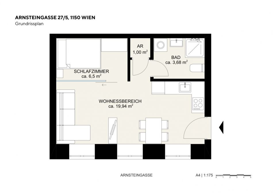 Modernes Wohnen im klassischen Rahmen – Ruhelage im Hof, Nähe Mariahilferstraße. In einer ruhigen Seitengasse in begehrter Lage des 15. Bezirks entsteht ein charmantes Wohnrefugium, das urbanen Lifestyle auf frisch saniertem Raum stilvoll inszeniert. Die ca. 32 m² große Wohnung in der Arnsteingasse liegt hofseitig ruhig und verbindet klassischen Altbaucharme mit durchdachter Modernität – ein Erstbezug nach hochwertiger Sanierung, ideal als stilvoller Rückzugsort oder attraktives Investment.