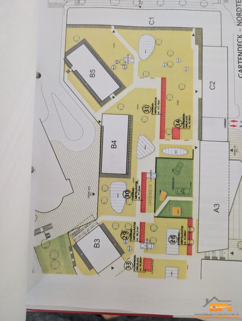 Es gibt außerdem ein Gartendeck mit rd. 12.500m² Fläche, auf der sich diverse Spielflächen, Ruhezonen und Fahrradabstellplätze befinden.