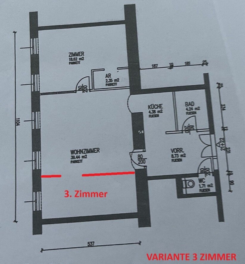 - Umbauvorschlag 3 Zimmer Wohnung möglich