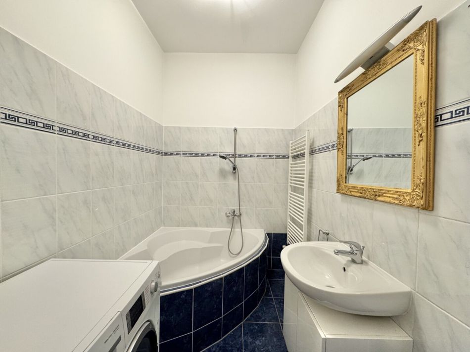 - Bad mit Wanne, Waschbecken, Handtuchheizkörper und WM-Anschluss
