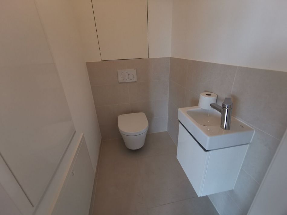 - hohe Materialqualität in den Sanitärräumen und modernste Sanitärtechnologie („Tornado-Flush“ im WC / spülrandlose Keramik)