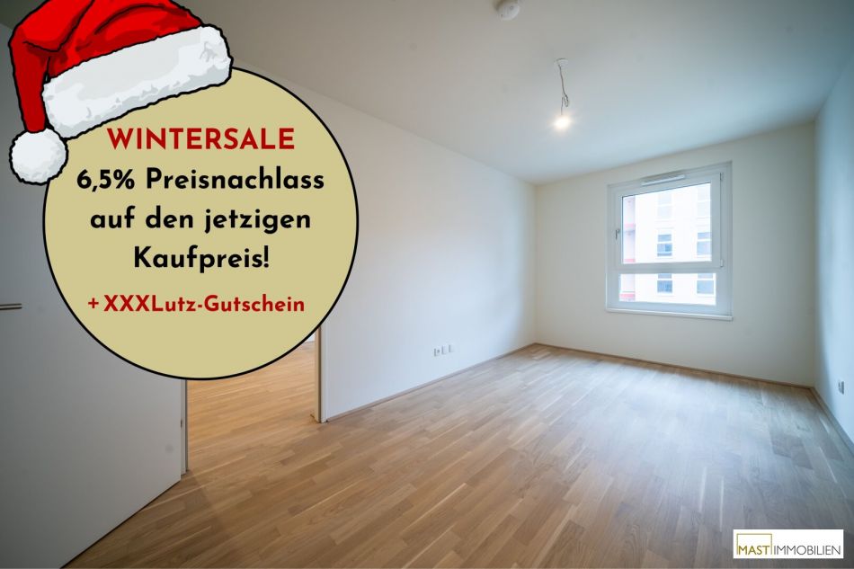 In der kalten Jahreszeit lassen wir die Preise schmelzen: Beim Kauf einer Eigentumswohnung in einem unserer Objekte in der Berresgasse ersparst du dir bis 31.3.2026 die Nebenkosten* und bekommst so jede Wohnung um 6,5% günstiger.
