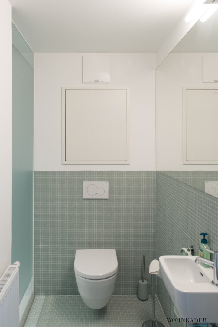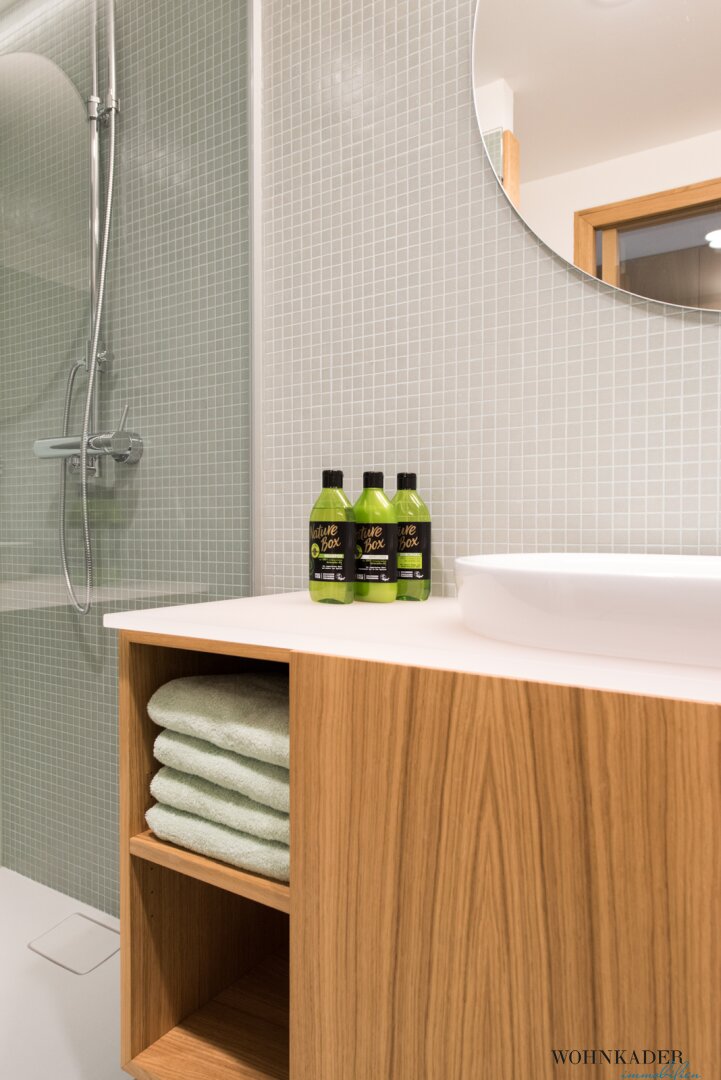 Für maximalen Komfort verfügt die Wohnung über einen maßgefertigten Garderoben-/Abstellraum, ein stilvolles Badezimmer mit einer großzügigen Walk-In-Dusche sowie ein separates WC mit Handwaschbecken.