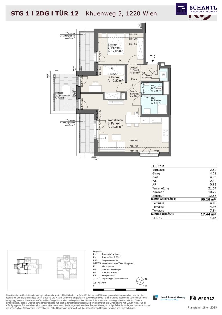 Wohnfläche: ca. 68,28m² + 3 Terrassen: ca. 17,44m² + Kellerabteil: ca. 1,84m²