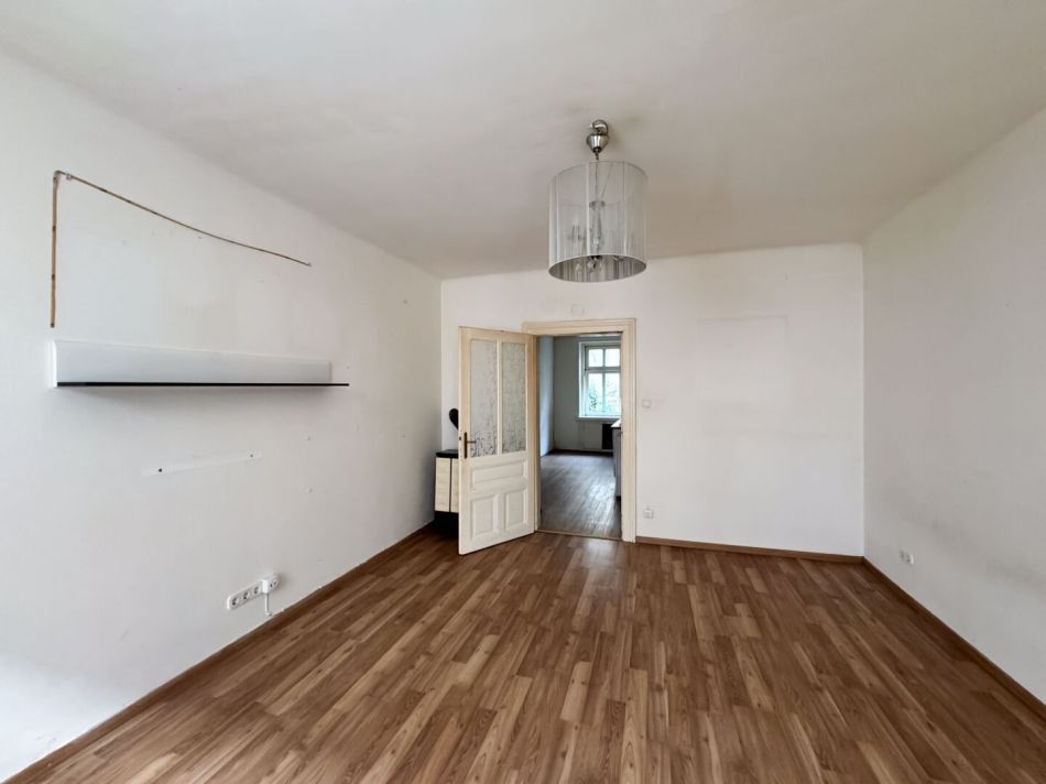 Aktuell besteht kein Plankonsens. Die Wohnung ist in einem renovierungsbedürftigen Zustand und wird mittels einem Gastkonvektor und einer Elektroheizung beheizt. Ein Kellerabteil ist zugehörig. Ein 49 m2 Gartenanteil welcher durch den Hof begehbar ist zugehörig.