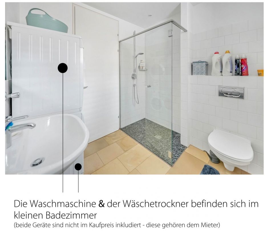 - MÖBLIERUNG: Die Möbel, welche Sie auf den Fotos und dem VIDEO sehen gehören dem Mieter und werden nicht mitverkauft. Ebenso sind die Waschmaschine und der Wäschetrockner Eigentum des Mieters. Sämtliche Fahrnisse werden vor der Übergabe der Wohnung an den neuen Eigentümer mieterseits entfernt. Das Kellerabteil wird leer – geräumt von allen Fahrnissen an den neuen Eigentümer nach Auszug des Mieters übergeben.