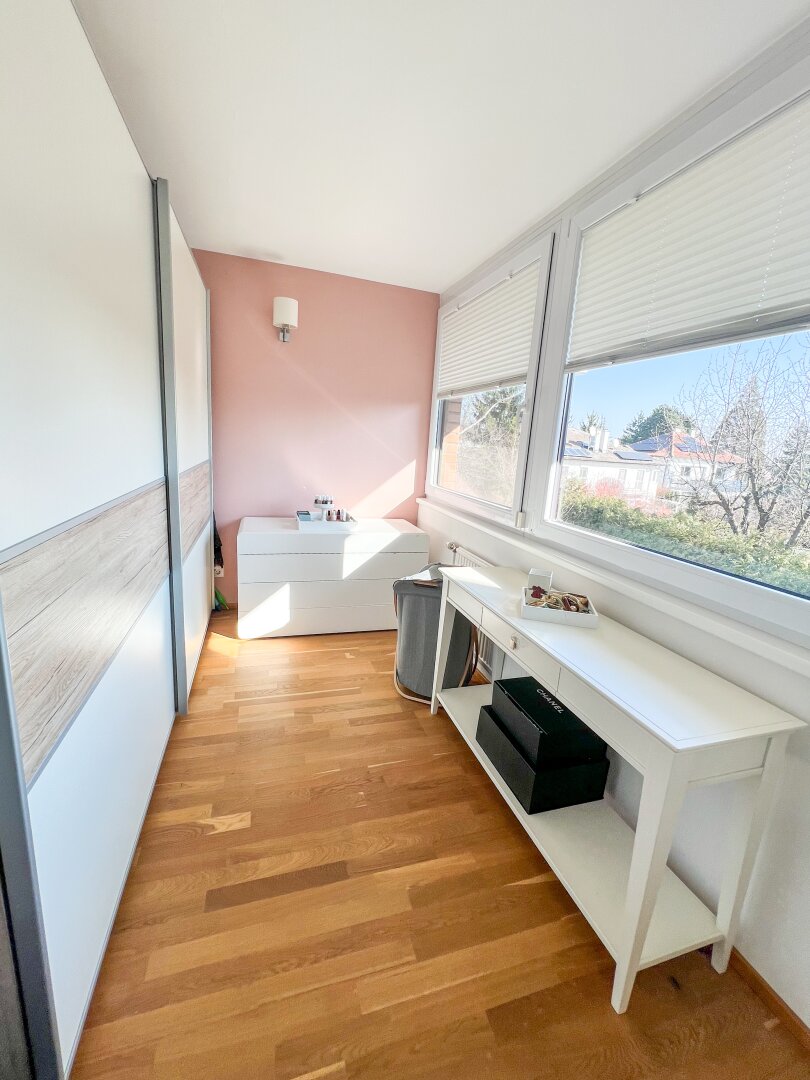 Besonders hervorzuheben ist die wunderschöne sehr helle Wohnküche die das Zentrum der Wohnung bildet. Die Küche ist mit Top Geräten ausgestattet und bietet neben einem Backrohr mit Mikrowellenfunktion auch einen Weinkühlschrank. Der Schlaf/Arbeitsbereich ist vom Wohnbereich abgetrennt. In Summe 3 Schlaf-Arbeitszimmer sind über einen Gang separat begehbar. Das Badezimmer mit Fenster ist mit einer Walkin Dusche, einem WC, einer Badewanne und hochwertigen Fliesen sowie Spiegeln ausgestattet. Eine Klimaanlage wurde im Wohnzimmer errichtet.
