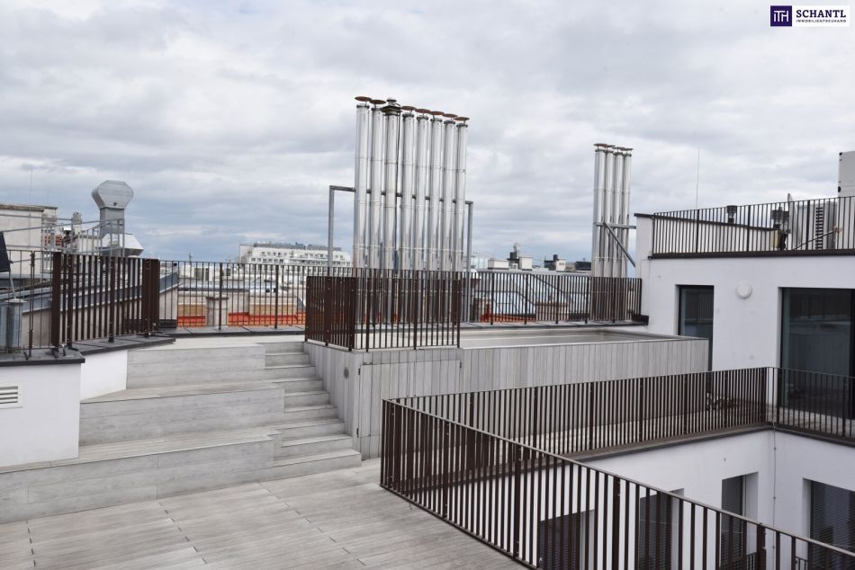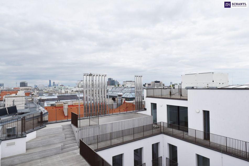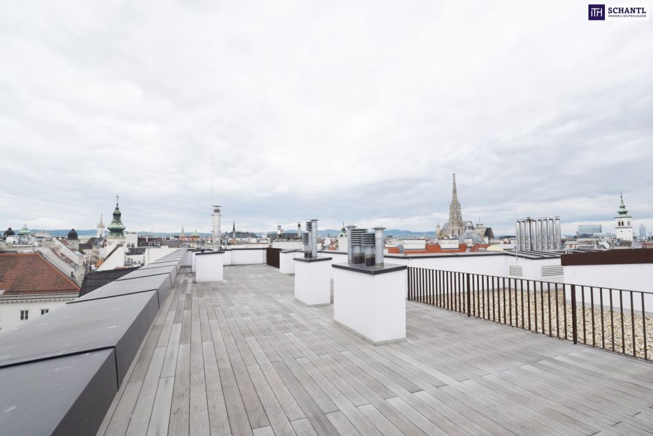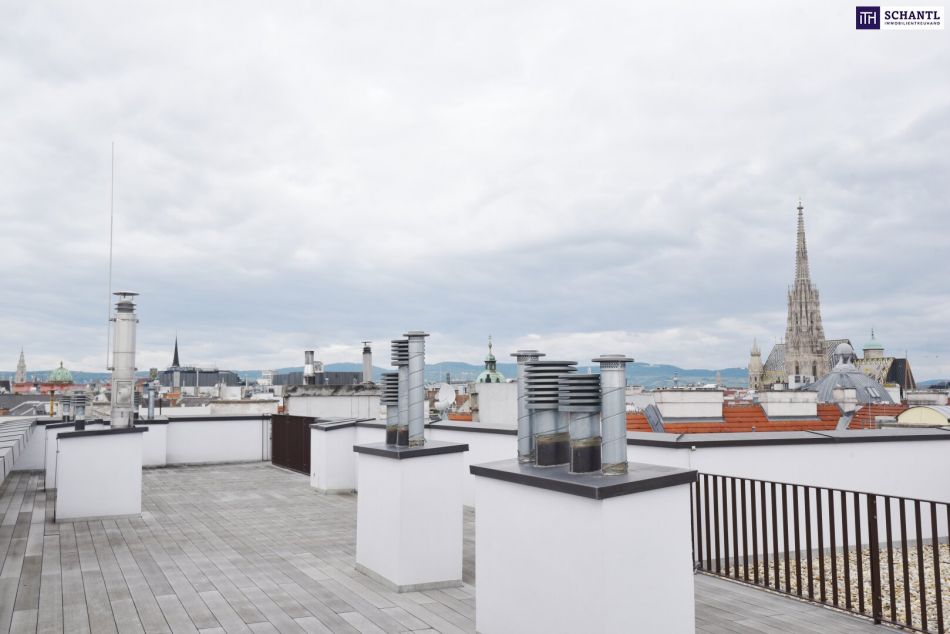 Dachterrasse: 133,12 m² mit 360°-Panoramablick, inkl. direkter Sicht auf den Stephansdom