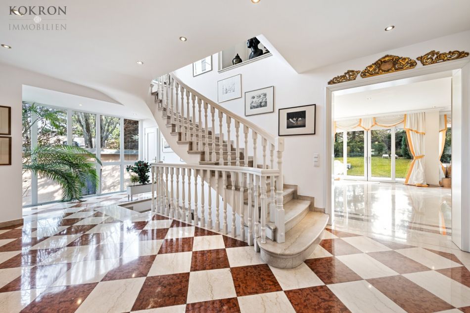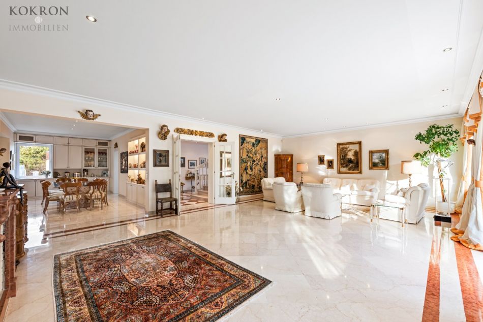 Die Villa präsentiert sich in einem sehr gepflegten Zustand und überzeugt durch eine durchdachte Raumaufteilung sowie hochwertige Materialien. Edle Stein- und Marmorböden verleihen den Wohnräumen eine zeitlose Eleganz, während ausgewählte Teppichböden für zusätzliche Behaglichkeit sorgen. Eine moderne, gasbetriebene Fußbodenheizung sorgt in allen Wohnbereichen für ein angenehmes Raumklima und hohen Wohnkomfort.
