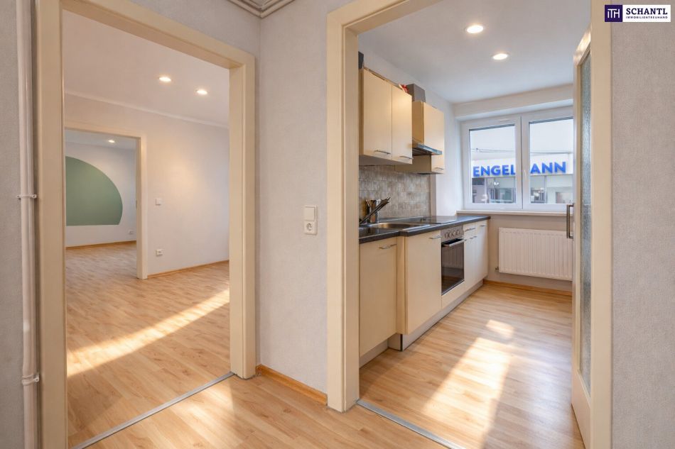 Die getrennte Küche ist ein klarer Vorteil gegenüber vielen offenen Wohnlösungen. Die beiden Zimmer bieten flexible Nutzungsmöglichkeiten – ob als klassisches Wohn-/Schlafkonzept oder mit Homeoffice-Lösung.