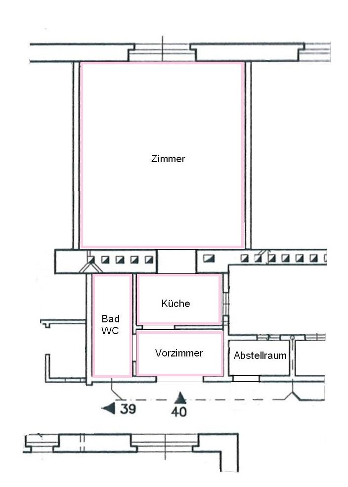 Was diese Wohnung bietet: Vorraum, voll ausgestattete Küche (Kühlschrank, Kochfeld, Spüle, Waschmaschine), Wohn-/Schlafbereich, Bad mit Dusche und WC. Warmwasser über Gasboiler. Blick auf den Millennium Tower.Kein Kellerabteil vorhanden.