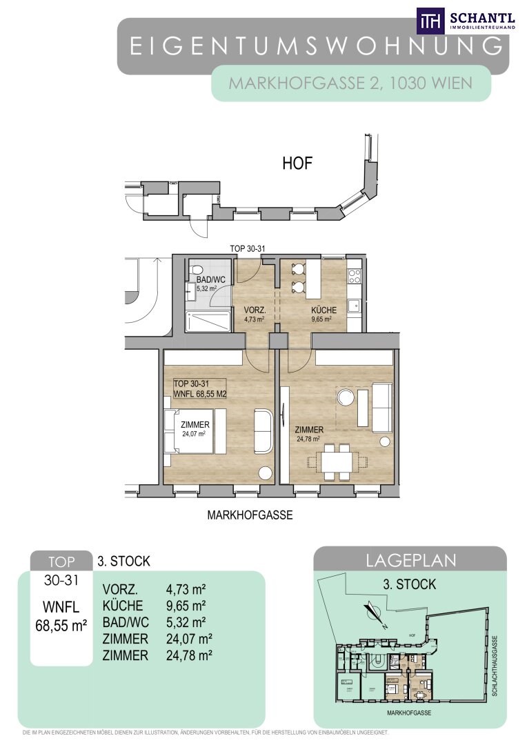 Wohnfläche: ca. 68,55m² + großes Kellerabteil: ca. 6,58m²