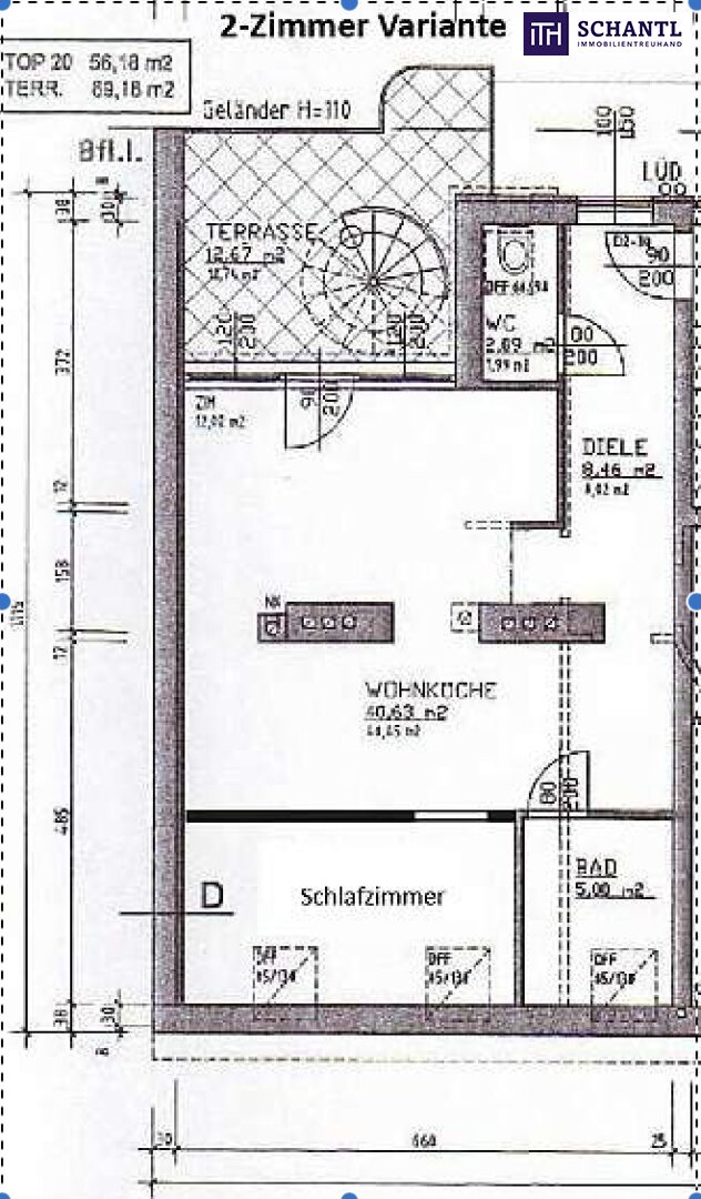 Größe Wohnung: 56,18 m2 + 2 Terrassen 69,18 m2